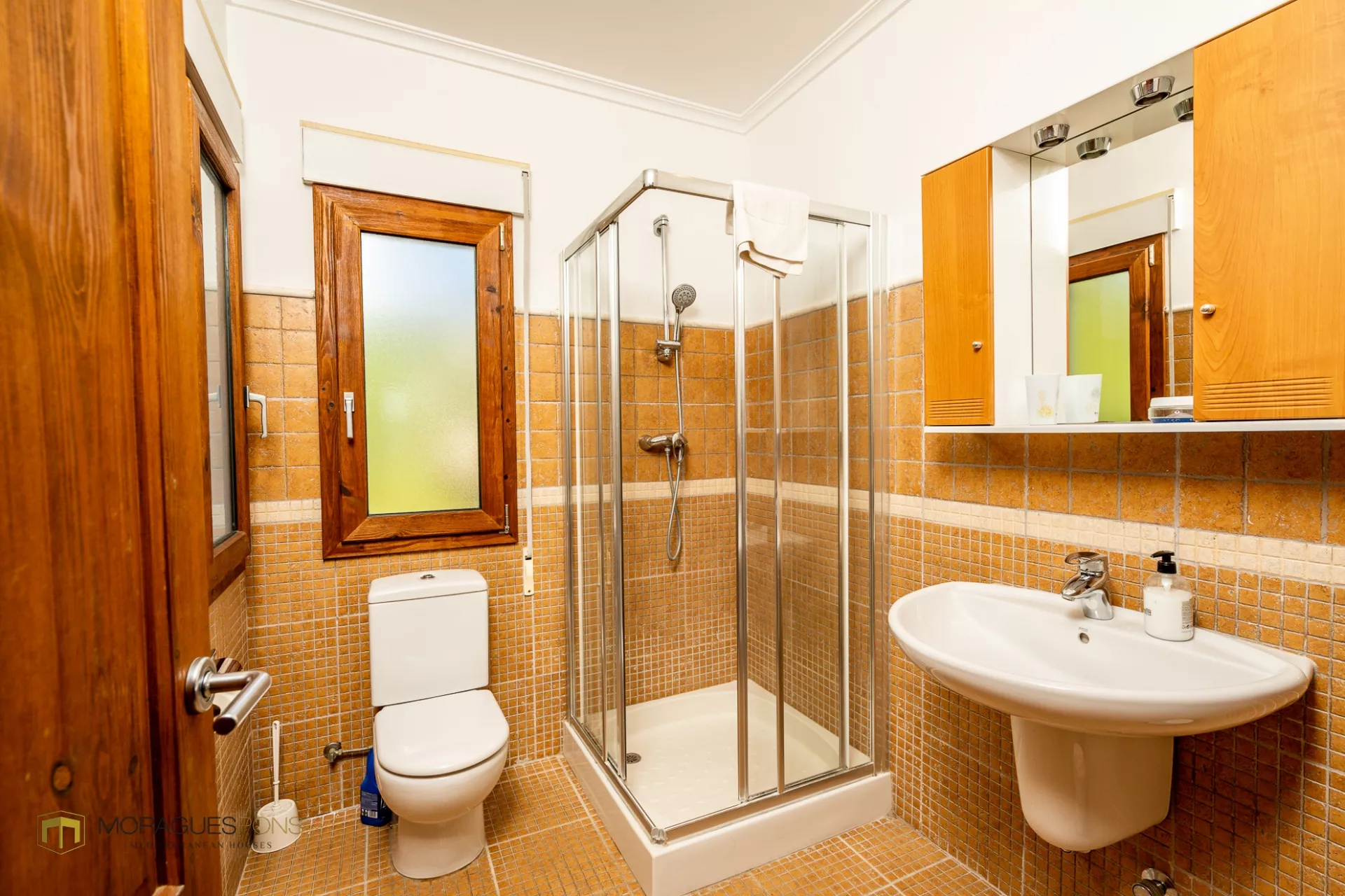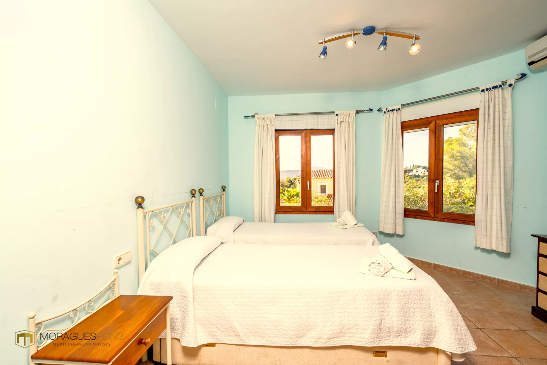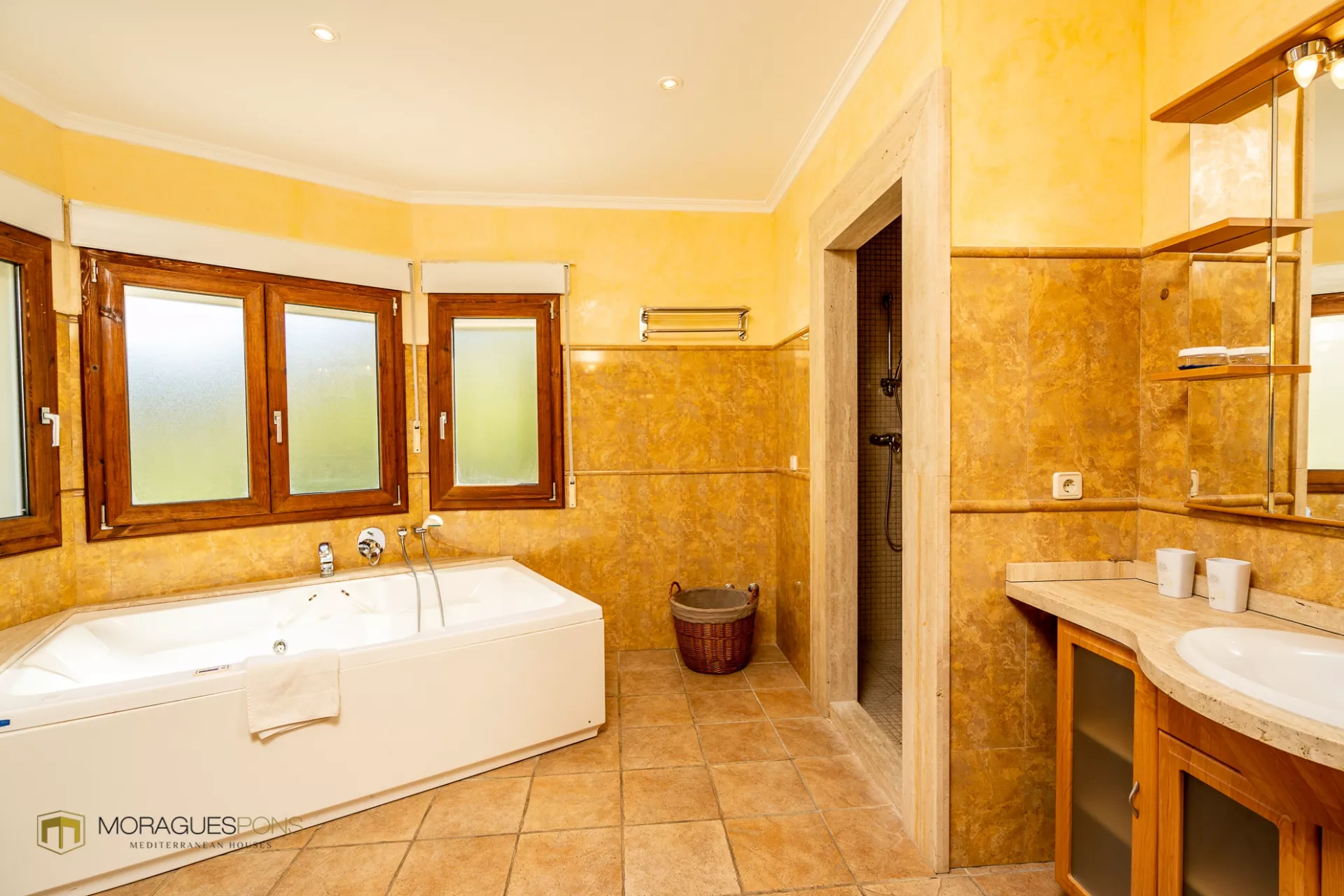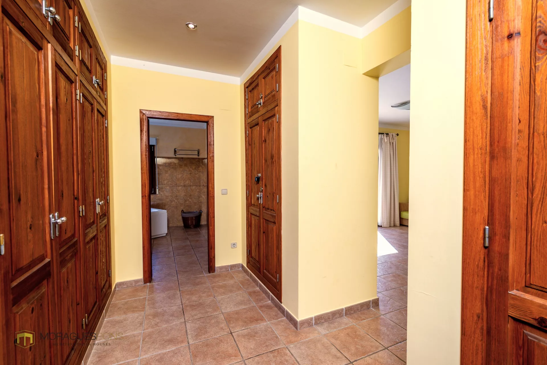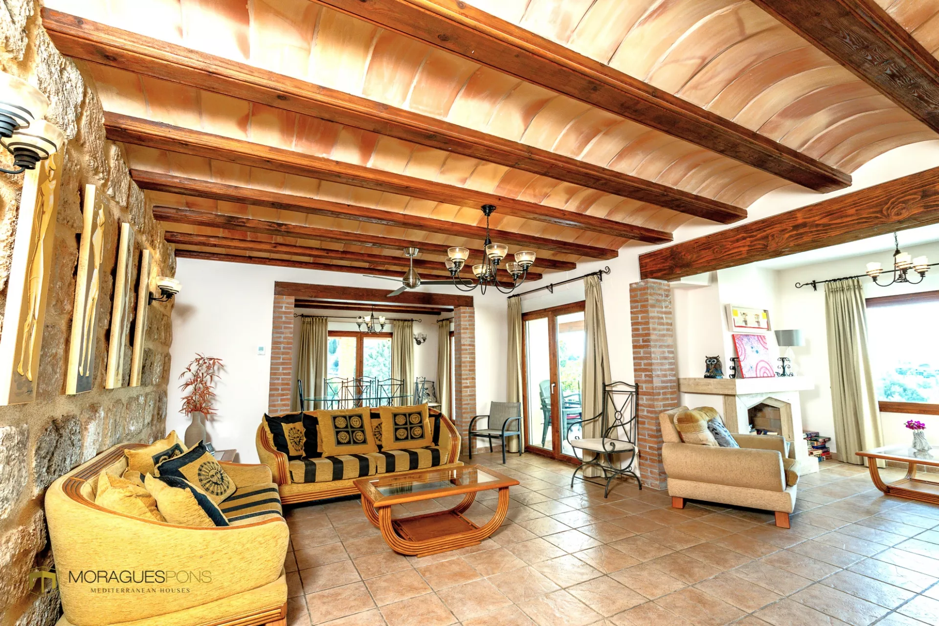 Het huis staat op een perceel van 1514m2 met een bebouwde oppervlakte van 332m2 plus 110m2 naya. Vanaf de prachtige rustieke houten voordeur kom je binnen in de hal met hoge plafonds en een marmeren trap. De hal leidt naar de woon- en eetkamer en ook naar de keuken met aparte bijkeuken. De woonkamer is groot en ruim met een gezellige open haard. De eetkamer leidt naar de keuken en toegang tot een grote overdekte naya en terras met uitzicht op het zwembad en de tuin. De keuken met aparte bijkeuken is ruim en heeft toegang tot een klein terras. Op de hoofdverdieping zijn twee ruime slaapkamers met inbouwkasten, een badkamer en een gastentoilet.