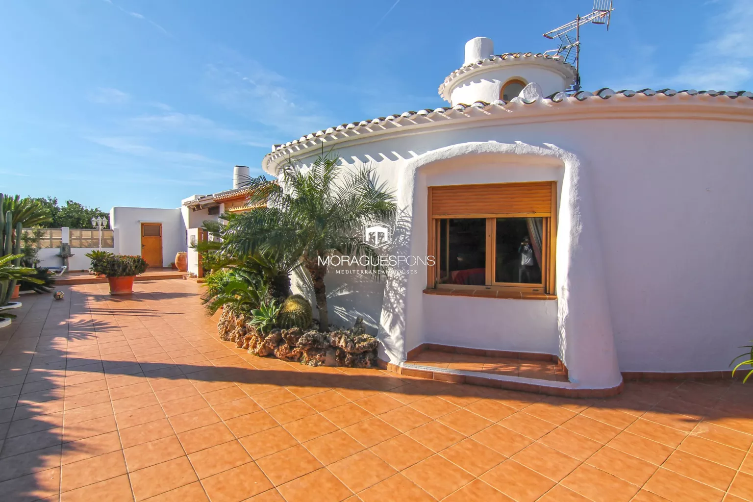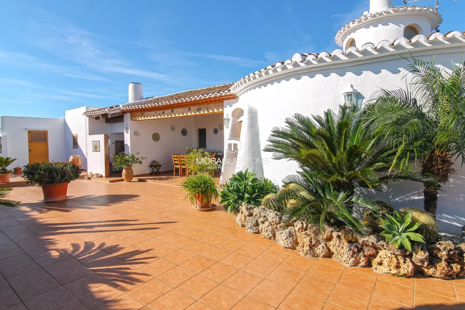 Buiten wordt het pas echt bijzonder: een grote overdekte veranda naast de barbecue, perfect voor lange zomeravonden vol gezelligheid. Een klein solarium met vrij uitzicht op de lucht van Jávea. Een extra kamer met airconditioning – nu gebruikt als opslag – die moeiteloos een studio of gastenverblijf kan worden.