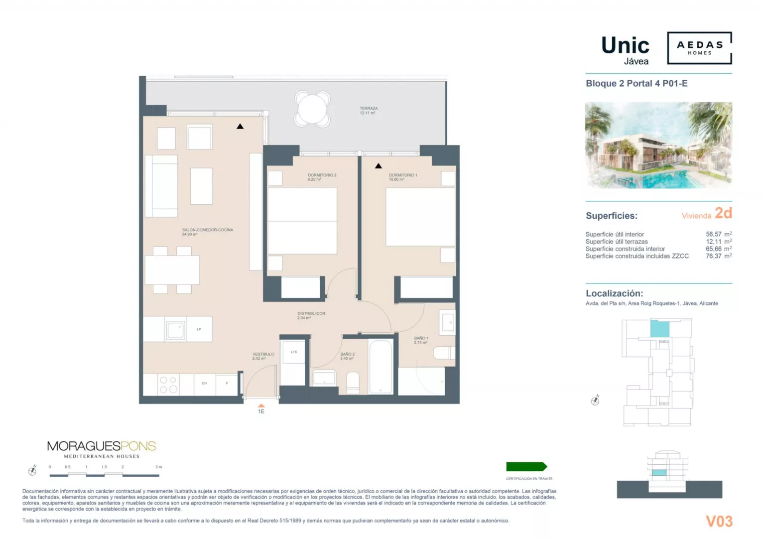 UNIC Javea, se compone de 58 viviendas de 2, 3 y 4 dormitorios distribuidas en planta baja con jardín. Incluye viviendas áticos, y duplex con grandes terrazas. Además, todas las viviendas dispondrán de plaza de garaje y trastero. El conjunto residencial contará con piscina y club social.