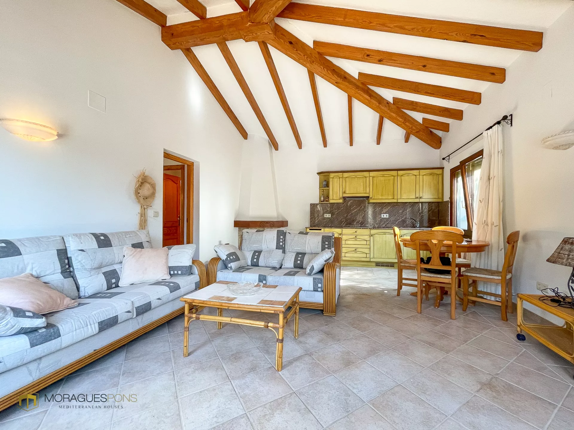 A la venta esta bonita villa con techos altos en la urbanización Balcón al Mar de Jávea. Se encuentra en perfecto estado de conservación, no es necesario realizar ninguna obra de acondicionamiento, lista para entrar a vivir y perfecta para aquellas personas que no necesiten grandes casas. Su zona de barbacoa junto a su piscina ofrece una estancia super confortable e ideal para esas noches de verano entre amigos.