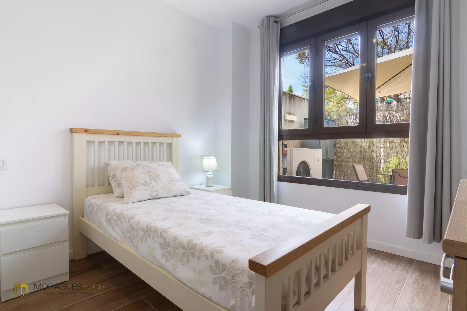 Imagina despertar cada mañana con la brisa marina y la promesa de un día perfecto junto al Mediterráneo. Este elegante apartamento en planta baja te ofrece exactamente eso: una vida cómoda y relajada, a solo dos minutos a pie de la icónica playa del Arenal.