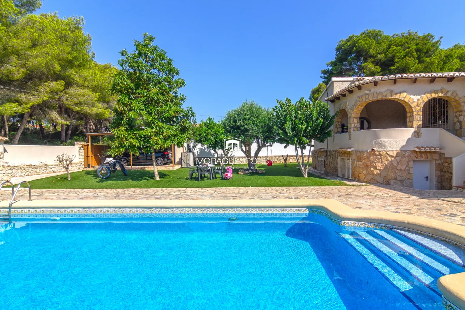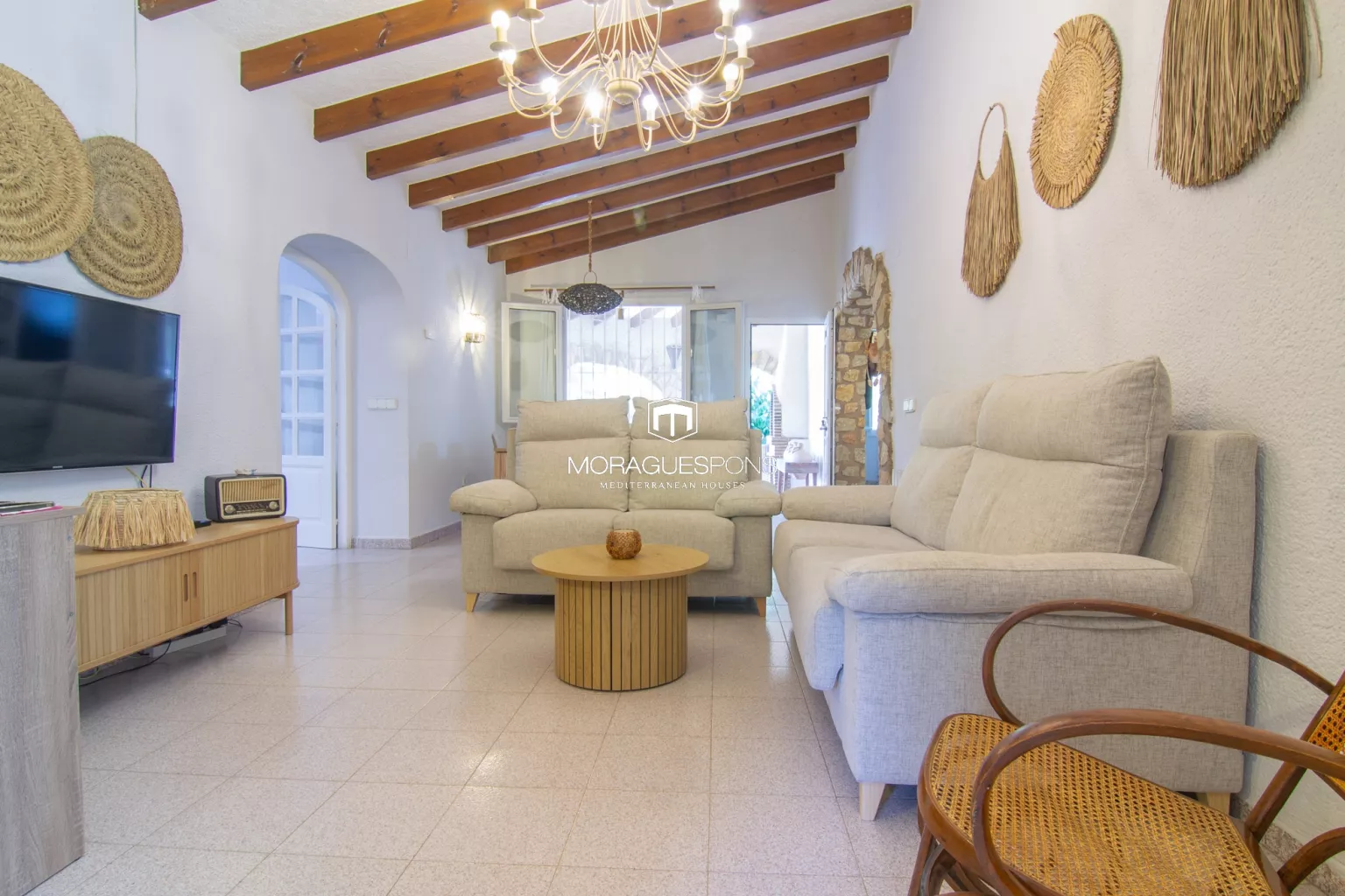 En una zona tranquila y cerca del Portitxol, esta propiedad combina comodidad, amplitud y un exterior de ensueño. La casa principal ofrece 3 dormitorios, 2 baños, un acogedor salón con naya y una amplia cocina, además de una habitación extra actualmente usada como sala de TV, perfecta también como despacho.