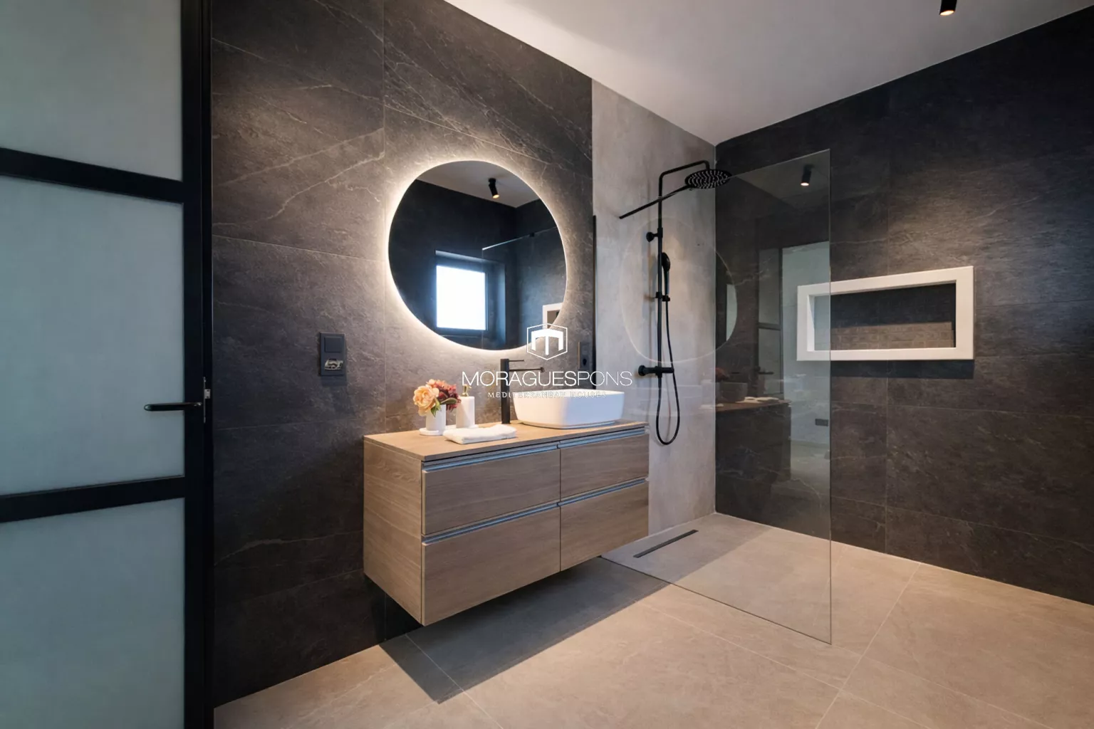Casa Iroko cuenta con 18 paneles solares y 20 kW de baterías, lo que permite alcanzar un consumo energético cero y una certificación A++.