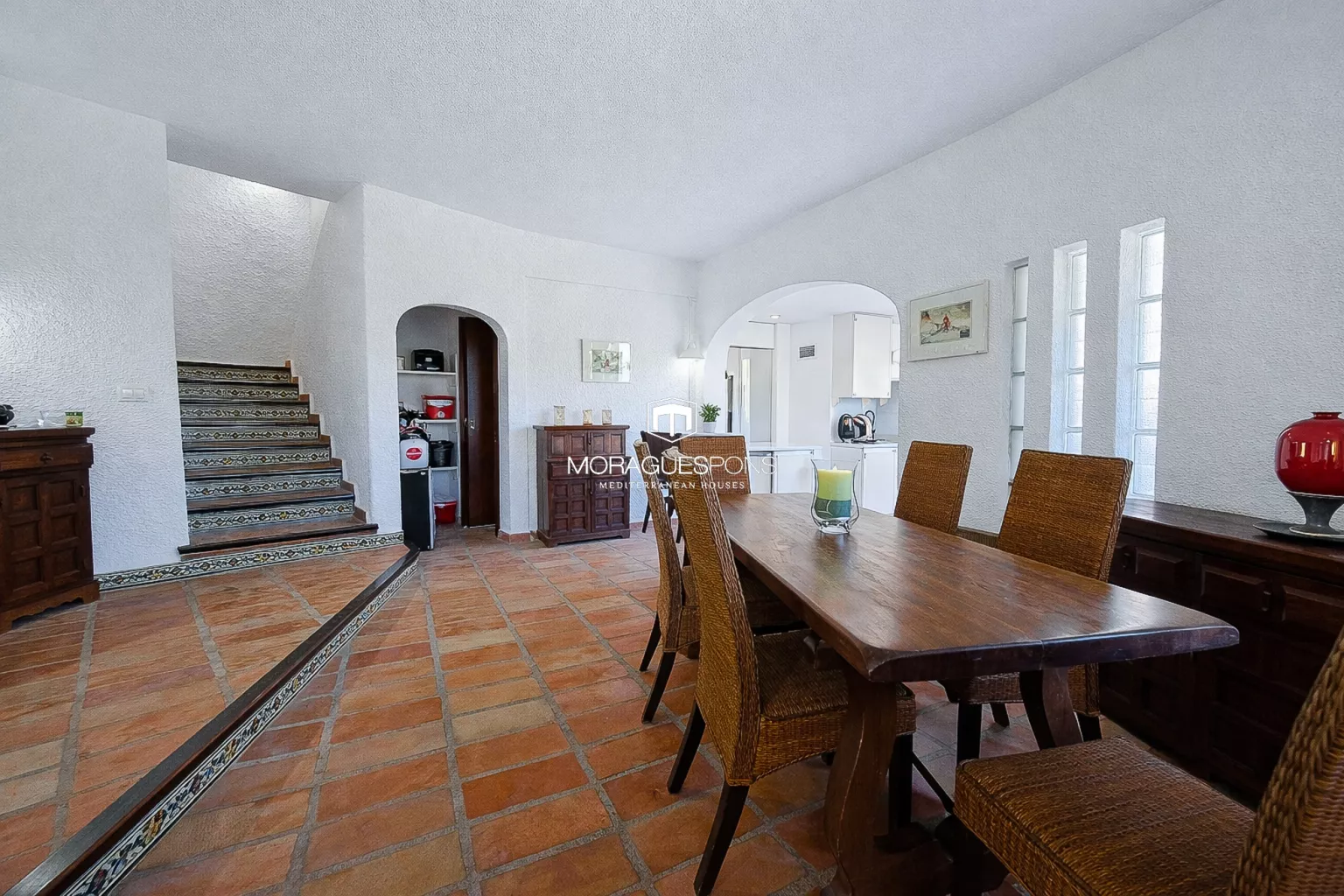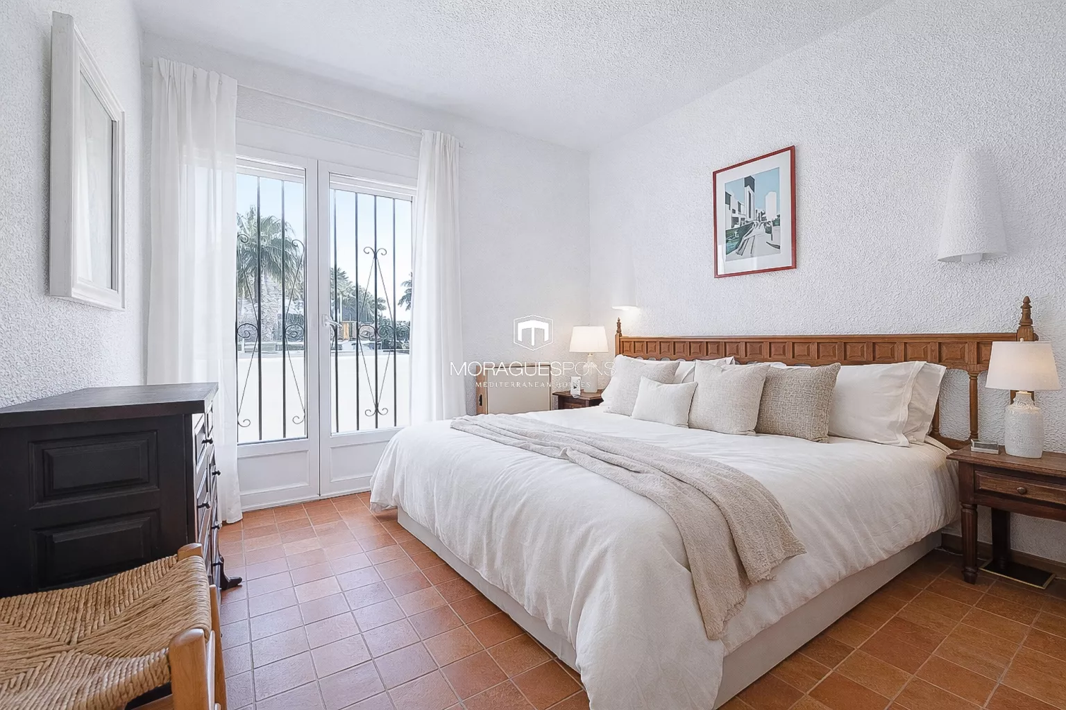 Los suelos de barro aportan carácter, frescura y autenticidad mediterránea. Dos de los tres dormitorios cuentan con terrazas privadas con vistas al mar, un auténtico lujo para despertar con el azul del Mediterráneo como telón de fondo.