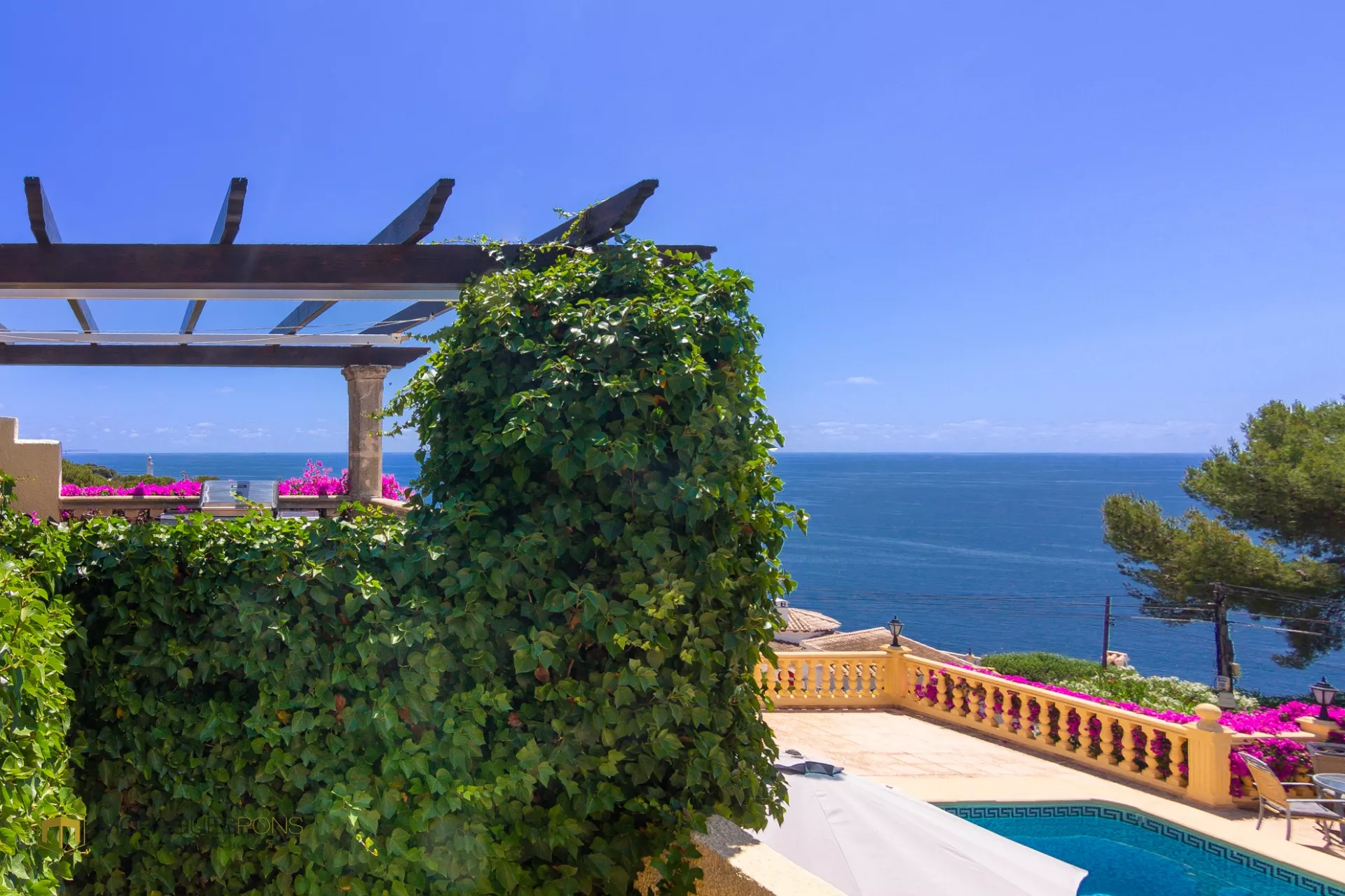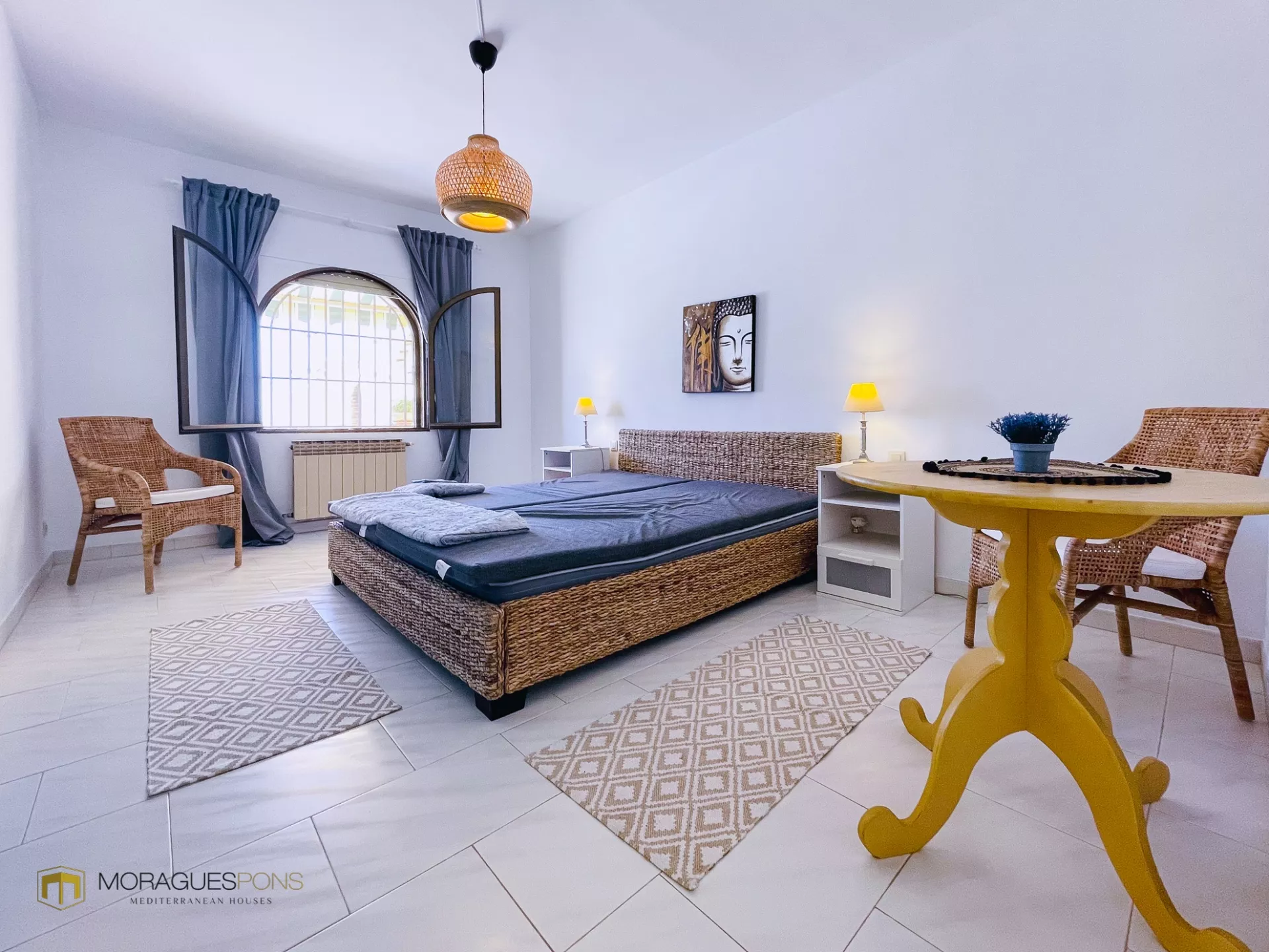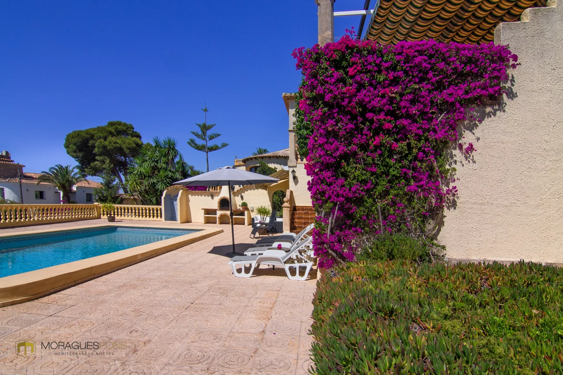 Su hermoso jardín mediterráneo te dejará sin palabras - lleno de color, cascadas de buganvillas y una refrescante piscina. Te sentirás en un paraíso de tranquilidad y belleza natural.
