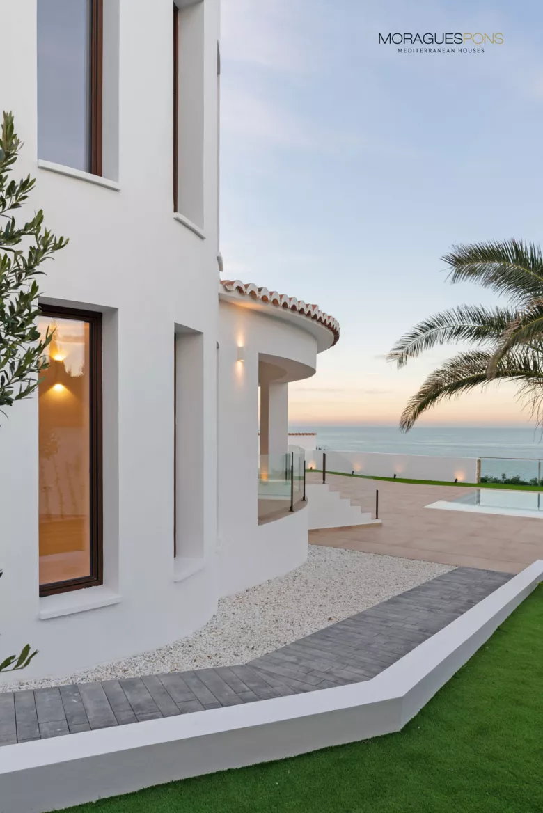 El estilo de esta propiedad puede que sea diferente. Puede que, gracias a ello, al verla tengas la sensación de estar en una especie de oasis, o sensación de frescura. También puede que la sensación de frescura que tienes al andar alrededor de su jardín, sea por estar frente al mar. Que la privacidad te la dé los amplios y distintos espacios de esta villa, denominada Mediterránea, como el mar al que se asoma.