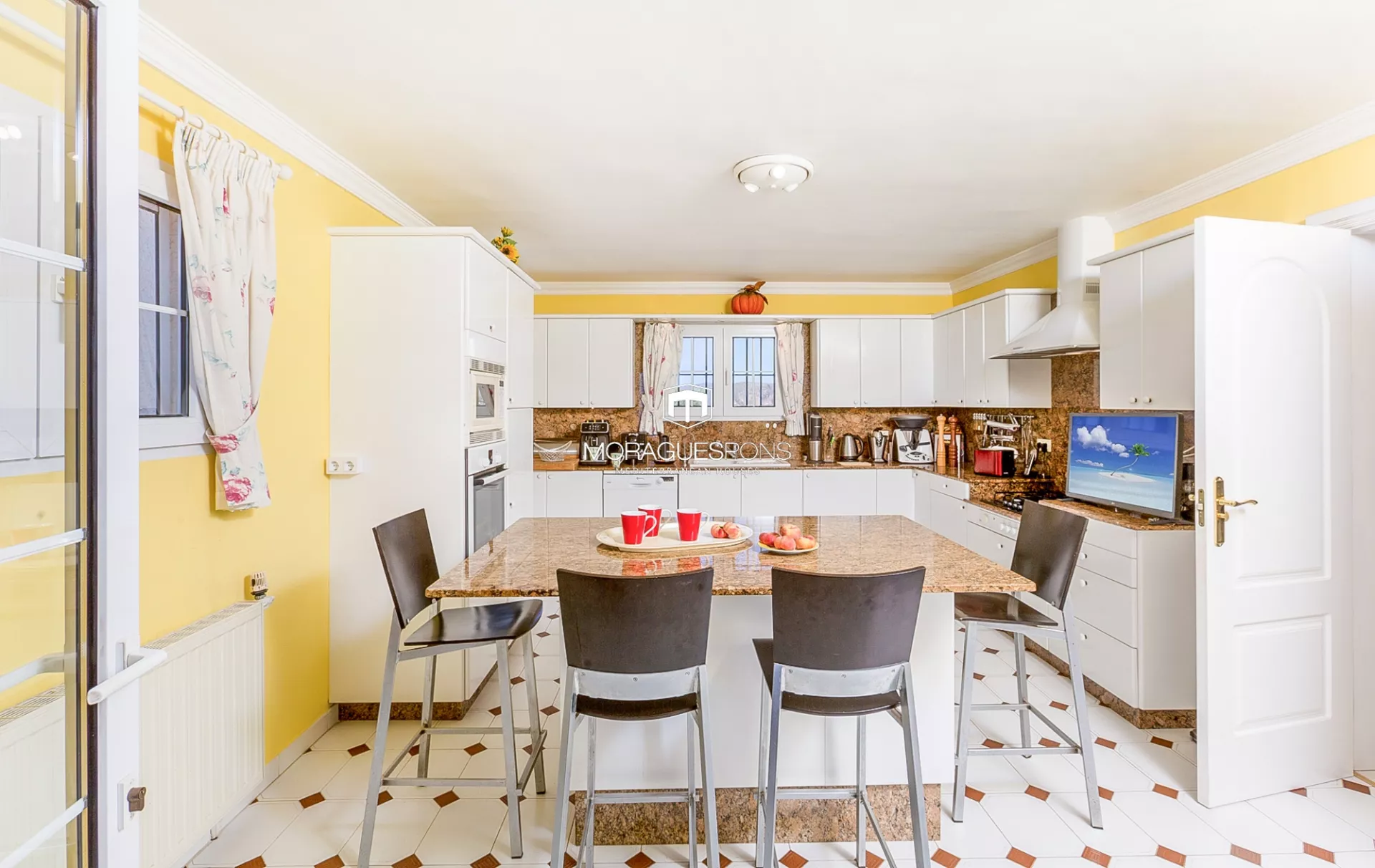 La cocina, moderna y funcional, se integra con el exterior creando una conexión perfecta entre interior y naturaleza.