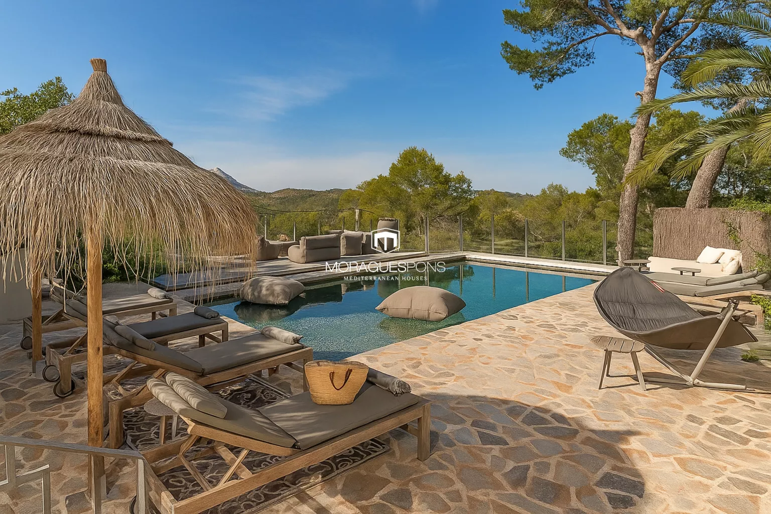 Una joya arquitectónica que combina el encanto del estilo tradicional con una reforma moderna de exquisito gusto. Esta villa ofrece dos apartamentos independientes, amplias terrazas cubiertas y abiertas, una cocina de verano, piscina con terraza flotante y una acogedora zona de barbacoa. Con sus cinco dormitorios, es el lugar perfecto tanto para recibir invitados como para crear espacios personales, ya sea un despacho, un estudio de arte o una sala de relax.