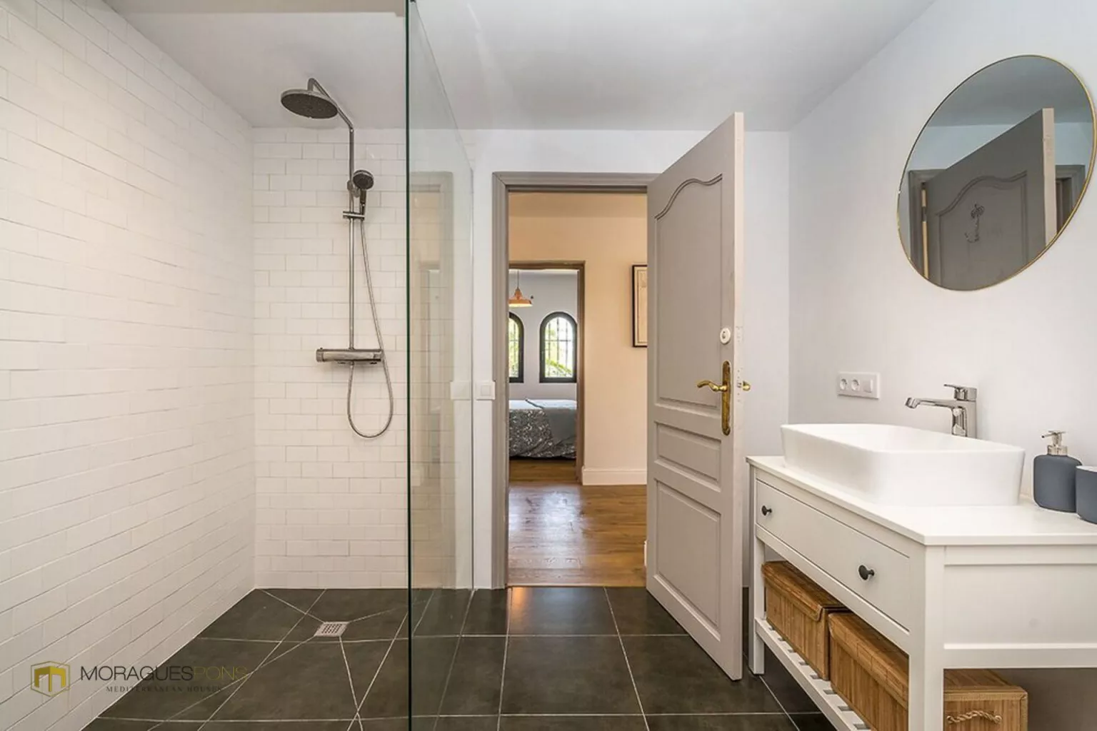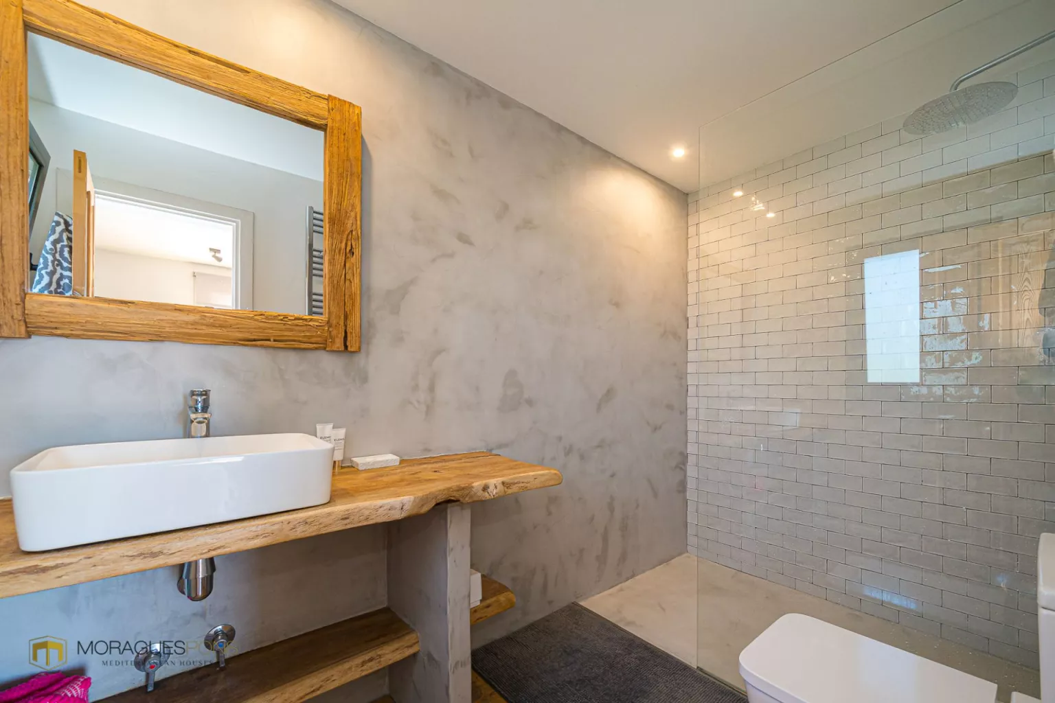 Esta villa es realmente una mezcla entre un estilo tradicional gracias a sus materiales nobles como la madera y la piedra tosca y un estilo mas moderno con espacios abiertos y colores blancos y neutros. Enamora por sus amplias estancias acogedoras, sus detalles bien acabados que ayudan a realzar el sentido de las estancias todo pensado para aprovechar la luz natural y las vistas a traves de sus grandes ventanales.