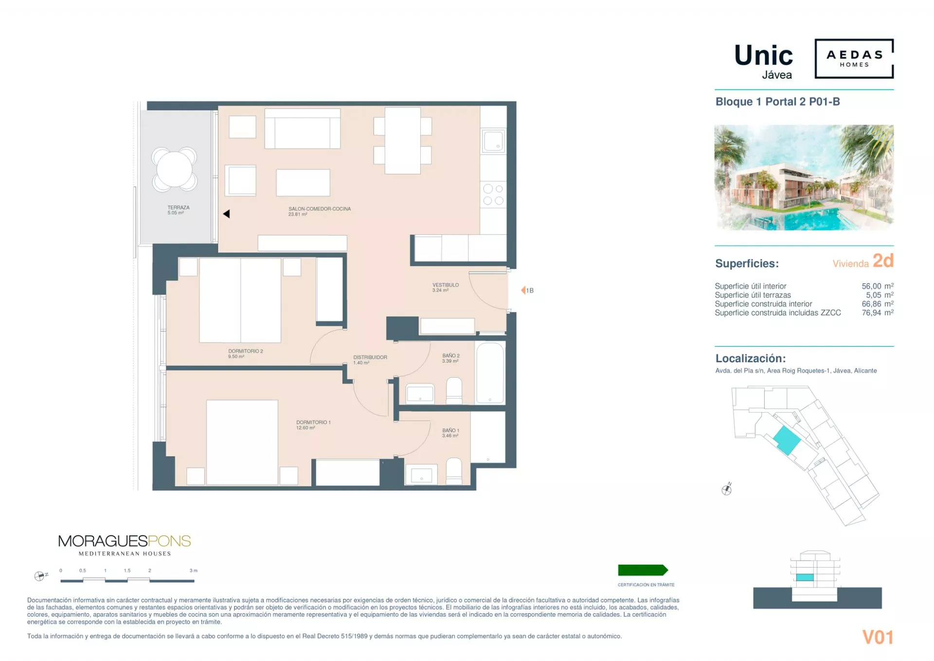 UNIC Javea, se compone de 58 viviendas de 2, 3 y 4 dormitorios distribuidas en planta baja con jardín. Incluye viviendas áticos, y duplex con grandes terrazas. Además, todas las viviendas dispondrán de plaza de garaje y trastero. El conjunto residencial contará con piscina y club social.